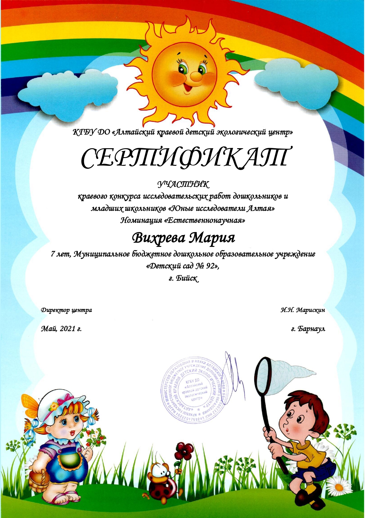 Приняли участие в краевом конкурсе исследовательских работ дошкольников и младших школьников «Юные исследователи Алтая».