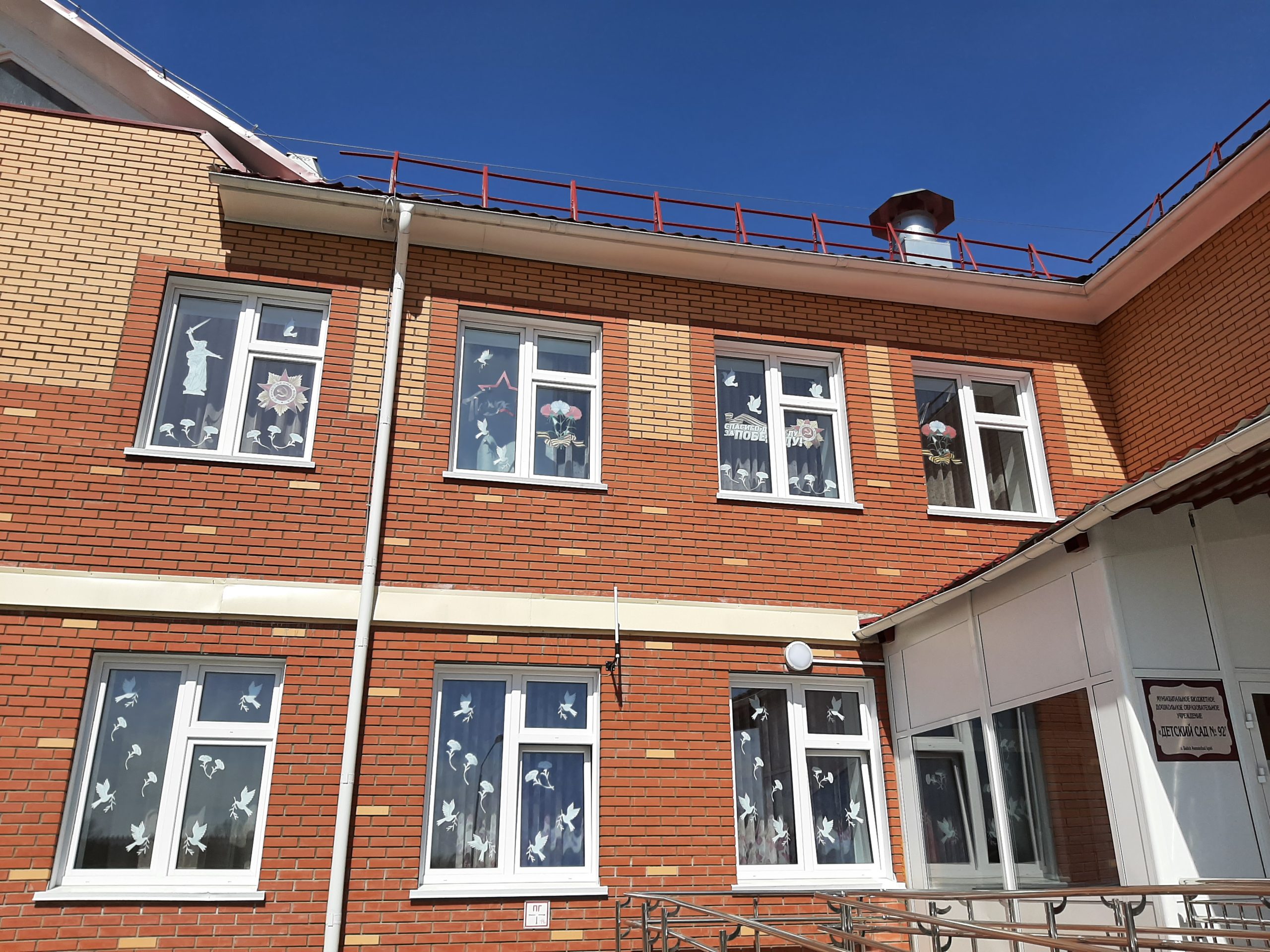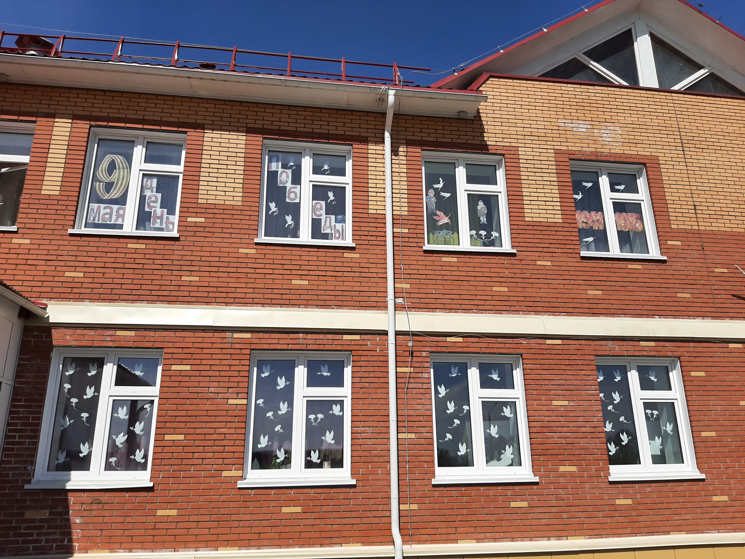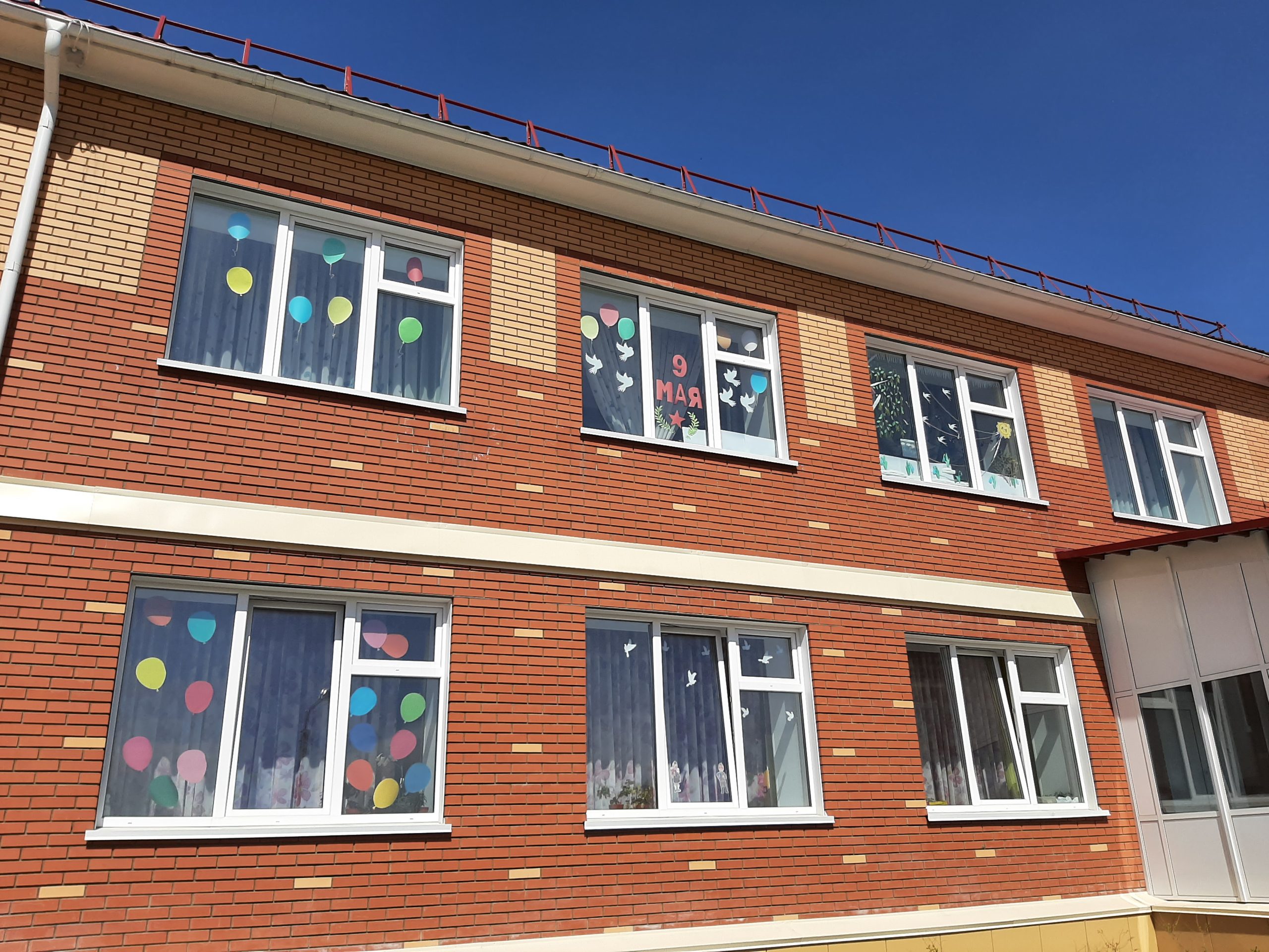 Ребята старшего дошкольного возраста с удовольствием вырезали тематические символы Победы, активно принимали участие в обсуждении общей концепции оформления. У младших дошкольников такое преображение фасада здания тоже вызвало восторг. Особенно понравились воздушные шары улетающие в небо. Очень понравилась небольшая концертная программа, которая проходила на улице. Звучали песни военных лет, все желающие подпевали или танцевали под знакомый мотив.