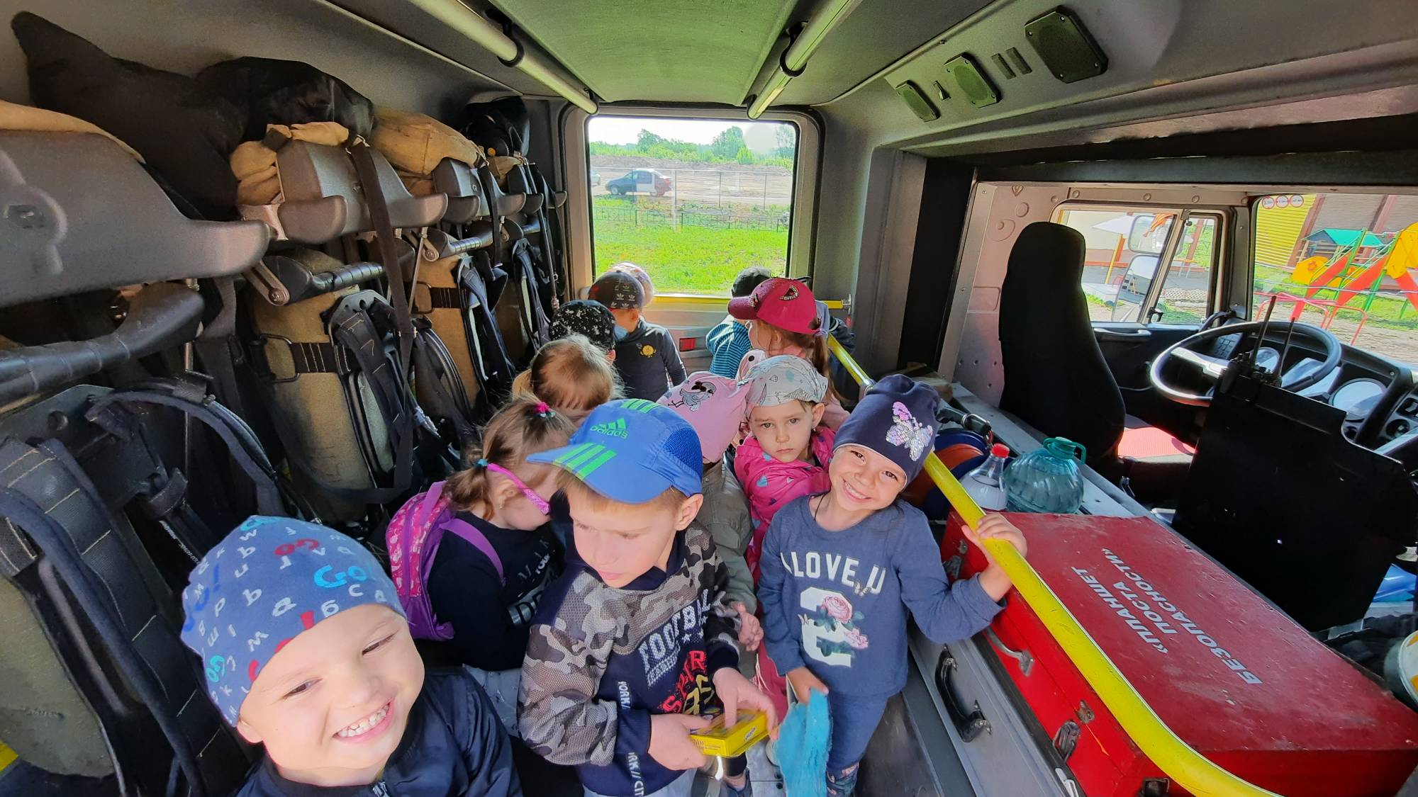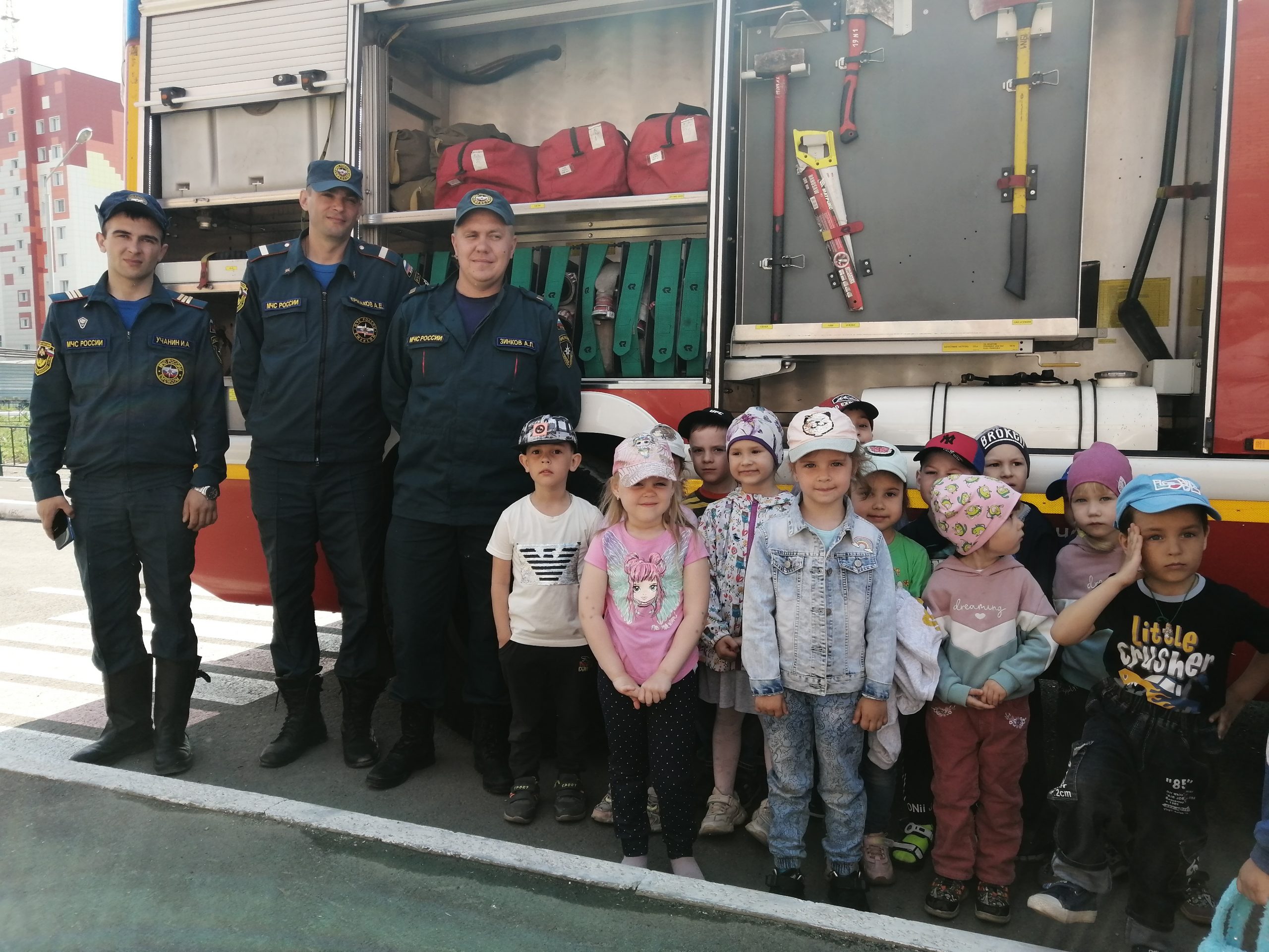 В день учебной тренировки даже самые маленькие воспитанники уже не боялись, а чётко знали и при этом послушно, дисциплинированно, да ещё и быстро выполняли всё то, что им говорил воспитатель. Эвакуация прошла без паники, персонал отработал все действия согласно разработанным планам эвакуации и инструкциям. После проведения занятий по эвакуации ребята смогли подержать в руках оборудование для тушения пожаров и посидеть в спец.машине.