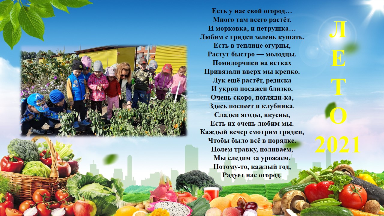 Лето подходит к концу. Ребята проводили его весело и увлекательно. И вот теперь можно полюбоваться плодами своего труда на огороде в детском саду.