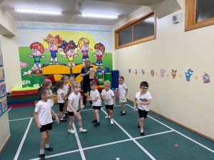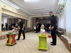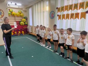 Мероприятие началось с торжественного выхода детей и приветствия гостей. Совместная разминка вместе с папами объединила всех участников. Родители и дети разделились на команды.