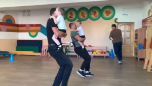 Группа № 20 МБДОУ «Детский сад № 92» корпус 2 провели квест «Секреты отцов». Наших пап Баба Яга превратила в детей. Чтоб снять заклятие, нужно заклинание. Оно находится у Мегомозга. Но тот растерял слова по садику. Папы перемещались по группам (конструирование, изо, эко, физ. зал). Последняя остановка в музыкальном зале, где после флешмоба произнесли заклинание и папы расколдовались. Затем все благополучно пошли пить чай с пирогом, которым угостила подобревшая Баба Яга.