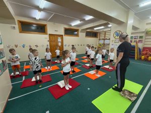 В рамках дополнительной общеобразовательной программы физкультурно-оздоровительной направленности «Детская йога» с 1 октября в корпусе 3 инструктор по физической культуре Вилисова Наталья Владимировна с вовоспитанниками средней, старший и подготовительных к школе групп организовывает занятия по этому напрвлению. Актуальность программы заключается в том, что на современном этапе развития общества она отвечает запросам детей и родителей; обусловлена компенсацией недостаточной двигательной активности современных детей; оказывает комплексное развивающее, воспитательное и оздоровительное воздействие; способствует формированию морально-волевых качеств личности и приобщает детей к здоровому образу жизни. Цель программы – создать условия для сохранения и укрепления здоровья, улучшения физического развития, повышения защитных функций организма и общей работоспособности детей в рамках дошкольного образовательного учреждения посредством занятий детской йогой. Ожидается что к концу освоения программы дети будут знать: