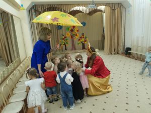 Первое осеннее развлечение сегодня прошло в смешанной группе раннего возраста «Капитошка». Малыши побывали в гостях у красавицы Осени.