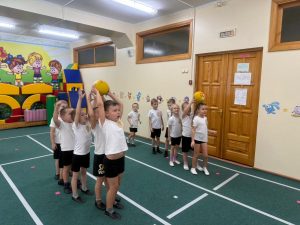 В октябре в корпусе № 3 инструктором по физической культуре Вилисовой Натальей Владимировной были проведены во всех возрастных группах спортивные развлечения. Спортивные мероприятия значимы для всестороннего развития и воспитания детей. Во время мероприятий дошкольники принимают участие в разнообразной двигательной деятельности — подвижных и спортивных играх, эстафетах, упражнениях. Действуя с большим эмоциональным подъемом дети совершенствуются физически. Так во второй младшей группе №30 дети побывали в сказке «Колобок». Выполнили задания зайца, волка и медведя, поиграли с хитрой лисой. Помогли главным героям вернуть колобка домой.