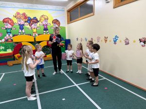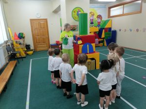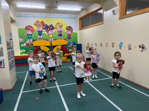 В средней группе ребята совершили «Путешествие в страну игрушек». Преодолевая препятствия, побывали на станциях «Мягких и заводных игрушек», где поиграли в подвижные игры «Котята и щенята», «У медведя во бору», «Самолеты» и «Автомобили». А также на «Станции кукол» выполнили музыкально – ритмическую разминку «Танец с куклами».