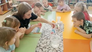 В рамках направления «Орлята-почемучки!» Всероссийской программы «Орлята-дошколята» в группе №4 МБДОУ «Детский сад № 92» корпус 1 прошло интересное и познавательное КТД «Веселые опыты», в ходе которого воспитанники повысили свой интерес к окружающему миру и миру науки. Ребята с огромным интересом создавали кристаллы, надували шарики и делали светящиеся колбы! Каждый эксперимент был не только весёлым, но и познавательным — дошкольники изучали простейшие химические реакции и развивали навыки сравнения и анализа, а также совершенствовали умение работы в команде.