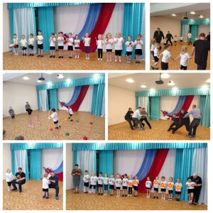 В группе № 24 было проведено совместное праздничное мероприятие учителя — логопеда и музыкального руководителя, посвящённое «Дню защитника Отечества». Где сочетались движение, речь и музыка. Участники вместе с ведущим выполняли интересные занятия, направленные на коррекцию речевых нарушений, развитие функциональных систем ребёнка (дыхания, голосового и артикуляционного аппаратов).