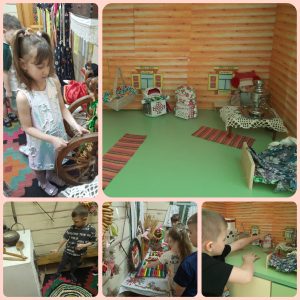 А после ребята отправились на экскурсию в мини-музей «Русская изба», где расмотрели убранство русской избы, узнали, что такое коромысло, как выглядит ухват, для чего и как использовалась прялка.