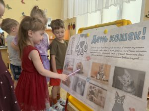 В группе № 32 была оформлена выставка рисунков и поделок из пластилина «Такие разные кошки». В течение дня Оксана Сергеевна рассказывала детям, какую пользу приносят кошки: они истребляют грызунов.